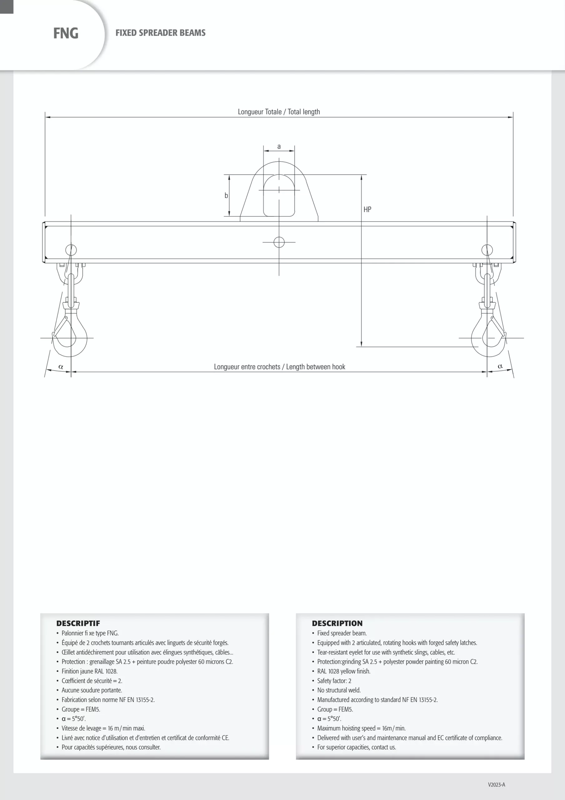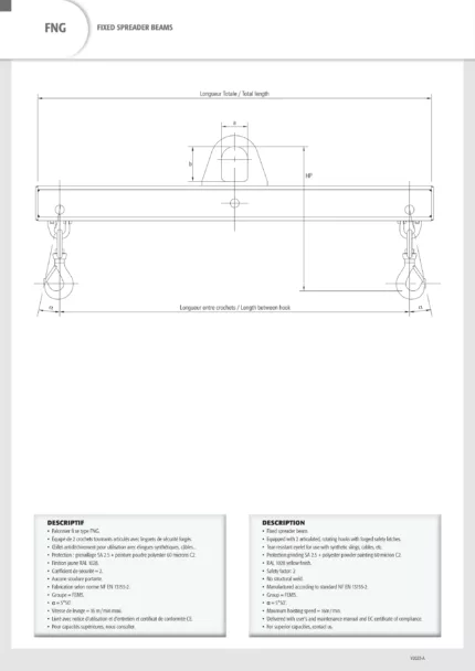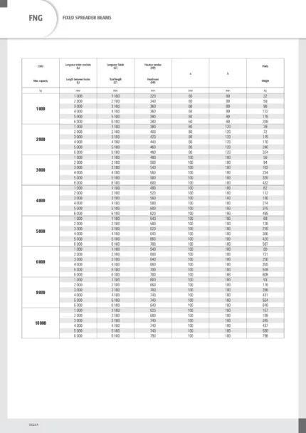 Dvižna traverza za dvigovanje tovora (FNG) – Osnovne specifikacije: